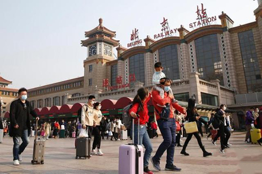 10月7日,旅客走過北京火車站廣場(chǎng)。中秋國慶假期即將結(jié)束,北京站客流漸增。