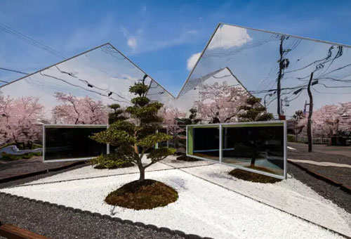 David Hertz Architects事務(wù)所認(rèn)為材料的大膽運(yùn)用往往會產(chǎn)生藝術(shù)效果,這是對Patrik Schumacher的斷言“建筑不是藝術(shù)”的有力沖擊。如果這也是一個“規(guī)則”那么這無疑是許多公司都在試圖打破的規(guī)則,在這個過程中產(chǎn)生了一些真的很脫俗的,偶爾會令人驚嘆的設(shè)計(jì)成果。Bandesign設(shè)計(jì)的位于日本岐阜的餐館就是這樣一個例子:這座房屋同時又是個大型的藝術(shù)裝置,兩個屋面傾斜的基本體塊仿佛一切為二,展現(xiàn)出一對神奇的鏡面墻,無限地反射著周圍的裝飾性樹木。