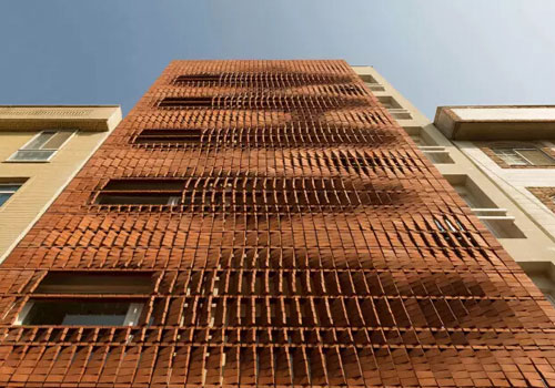 Hisanori Ban的不同尋常的外觀設(shè)計(jì)同時也代表著近幾個月來許多公司對于材料應(yīng)用的更廣泛的研究。這些新嘗試中最引人注目的一個項(xiàng)目就是Admun Design and Construction Studio事務(wù)所的“隱于磚”項(xiàng)目,它位于伊朗的德黑蘭。建筑師拋開了這種古老材料的常規(guī)屬性和傳統(tǒng)砌筑形式,創(chuàng)造出了一種高低起伏的形式,相對于黏土塊來說更像織物。