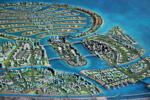 位于迪拜的人工群島,外形酷似一片棕櫚葉,包括一個(gè)新月造型。建造人工島所需的沙子來自波斯灣。棕櫚島開發(fā)商為當(dāng)?shù)氐? Nakheel公司,來自比利時(shí)和荷蘭的土地改造專家Jan De Nul和Van Oord負(fù)責(zé)清淤工作。