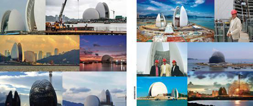 “日月貝”外型薄壁大曲面施工,全部采用最先進(jìn)的三維建模BIM技術(shù)。但弧形的外墻只能通過(guò)分段澆筑來(lái)實(shí)現(xiàn),而且要通過(guò)一次次的精確定位來(lái)確?;《鹊木_性,這是施工過(guò)程中的重大難點(diǎn),不能疏忽大意。由于“日月貝”選址的特殊性,特意選用鋼化材料構(gòu)建的外墻面通過(guò)定期清潔,可使其克服潮濕侵蝕,保持歷久彌新。