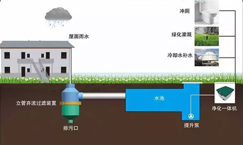 小區(qū)建筑規(guī)劃需要考慮自來水、污水、雨水,還有可能包括直飲水、市政再生水、地下水和地表水的引入、輸送、排放和處理等。雨水的收集、利用、排放與綠色建筑規(guī)劃密切相關(guān)。如建筑區(qū)域屋面、綠地、道路等的占地面積與其表面鋪裝材料直接影響雨水徑流量與下滲量,若以增加雨水下滲量為目的則勢必要選擇透水性較好的路面、廣場等鋪裝材料,改善綠地基質(zhì),增加其蓄水量。屋面綠化也會蓄留部分降雨,減少屋面雨水的徑流量,徑流系數(shù)可從0.9降到0.3左右。