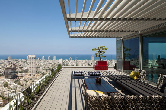 這套可俯瞰以色列特拉維夫市的頂層公寓位于30和31層,為業(yè)主的家庭和其收藏的當(dāng)代藝術(shù)品提供了一處奢華的空間。該豪華公寓由pitsou kedem建筑事務(wù)所設(shè)計完成,功能分布于兩層樓,圍繞著一個核心排布。