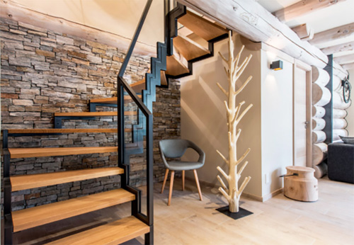 AmDeCo設計團隊運用淺色原始木建材,搭配深色系家具、木質、鐵件組合以及動物圖案家飾,塑造出野性基調的室內(nèi)環(huán)境,讓這間小屋也建立在永續(xù)發(fā)展和對環(huán)境友善思維上。造型火爐作為客餐廳分界,同樣也是空間重點,餐廳用強烈深色木紋帶出屋內(nèi)個性,鮮明節(jié)點與年輪都能展現(xiàn)與眾不同氛圍,加上樓梯走道旁以裸露磚墻凸顯自然美感,形成磚塊與木頭間相互對話。而臥房部分,維持簡約清爽基本機能性,運用開窗設計注入光感,同樣使用大量原木元素營造愜意氛圍。