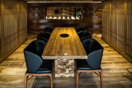 海牧場毛蟹坊創(chuàng)立于2007年,以經(jīng)營朝鮮帝王蟹為主,市場定位為中高端餐飲。設(shè)計(jì)初期,業(yè)主曾提議本案以突出朝鮮民俗特色為主,但由于青島特殊的地理位置以及近年來深受日韓文化影響下韓式餐廳多如牛毛的現(xiàn)狀,為消除消費(fèi)者的審美疲勞以及對這一類型餐廳的固有印象。