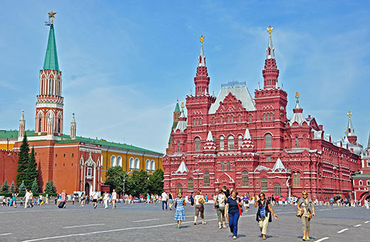 紅場(chǎng)是俄羅斯首都莫斯科市中心的著名廣場(chǎng),位于莫斯科市中心,西南與克里姆林宮相毗連。原是前蘇聯(lián)重要節(jié)日舉行群眾集會(huì)和閱兵的地方。辟于十五世紀(jì)末,十七世紀(jì)后半期取今名。平面長方形,面積約4公頃。西側(cè)是克里姆林宮,北面為國立歷史博物館,東側(cè)為百貨大樓,南部為瓦西里布拉仁教堂。臨莫斯科河。列寧陵墓位于靠宮墻一面的中部。墓上為檢閱臺(tái),兩旁為觀禮臺(tái)。紅場(chǎng)的知名度可以與天安門廣場(chǎng)媲美。