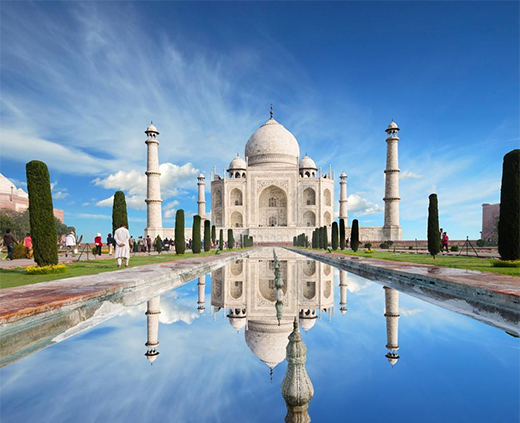 泰姬陵是印度知名度最高的古跡之一,在今印度距新德里200多公里外的北方邦的阿格拉 (Agra)城內(nèi),亞穆納河右側(cè)。是莫臥兒王朝第5代皇帝沙賈汗為了紀(jì)念他已故皇后阿姬曼·芭奴而建立的陵墓,被譽(yù)為“完美建筑”。它由殿堂、鐘樓、尖塔、水池等構(gòu)成,全部用純白色大理石建筑,用玻璃、瑪瑙鑲嵌,絢麗奪目、美麗無比。有極高的藝術(shù)價(jià)值。是伊斯蘭教建筑中的代表作。2007年7月7日,成為世界新七大奇跡之一。