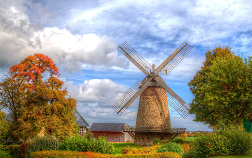 人們常把荷蘭稱為“風(fēng)車之國”,荷蘭是歐洲西部一個(gè)只有一千多萬人口的國家。它的真正國名叫“尼德蘭”?!澳岬隆笔堑偷囊馑迹疤m”是土地,合起來稱為“低洼之國”。荷蘭全國三分之一的面積只高出北海海面l米,近四分之一低于海平面,真是名符其實(shí)的“尼德蘭”。荷蘭坐落在地球的盛行西風(fēng)帶,一年四季盛吹西風(fēng)。同時(shí)它瀕臨大西洋,又是典型的海洋性氣候國家,海陸風(fēng)長年不息。