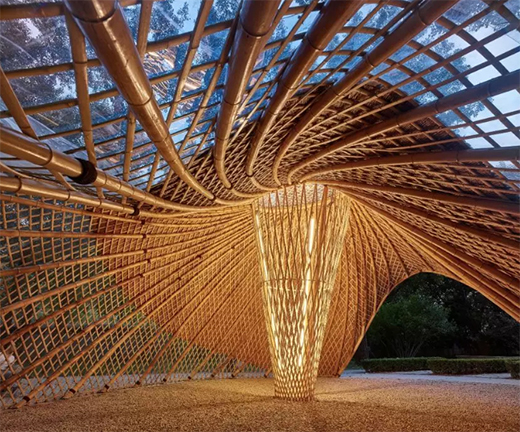 在與這些工程復(fù)雜度高、體量大的項(xiàng)目的競(jìng)爭(zhēng)中,僅120平米的原竹建造的云在亭獲得評(píng)委認(rèn)可,最終得獎(jiǎng)。