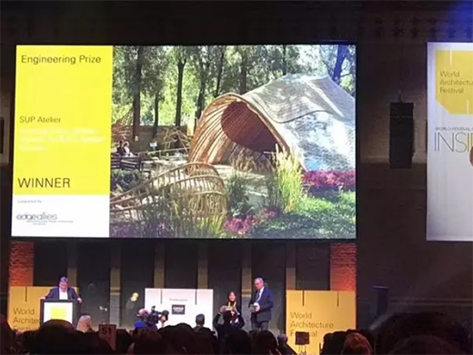 2019WAF世界建筑節(jié)于12月4日-6日在荷蘭阿姆斯特丹舉辦。由我院宋曄皓教授主持的SUP素樸建筑工作室設(shè)計(jì)的2個(gè)項(xiàng)目共入圍了5個(gè)類(lèi)別的獎(jiǎng)項(xiàng),“云在亭”項(xiàng)目最終斬獲“工程設(shè)計(jì)大獎(jiǎng)”(Engineering Prize)?!肮こ淘O(shè)計(jì)獎(jiǎng)”是組委會(huì)特別獎(jiǎng)之一,是組委會(huì)從已入圍短名單的諸多項(xiàng)目中優(yōu)選出數(shù)目不等的項(xiàng)目直接參與評(píng)選的類(lèi)別。特別獎(jiǎng)包括“工程設(shè)計(jì)獎(jiǎng)”、“自然光運(yùn)用獎(jiǎng)”、“色彩運(yùn)用獎(jiǎng)”、“小型建筑獎(jiǎng)”、“木材運(yùn)用獎(jiǎng)”、“阿姆斯特丹獎(jiǎng)”共六個(gè)類(lèi)別。