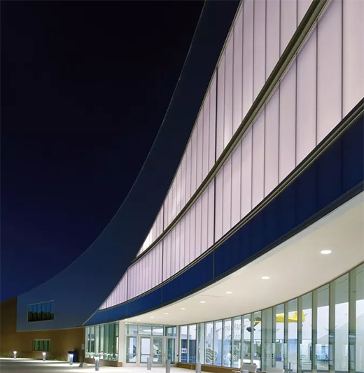 建筑物與相鄰高速公路的距離非常近,呈現(xiàn)出極其惡劣的聲學(xué)環(huán)境。通過建筑物的造型和選址,創(chuàng)造出一個(gè)‘聲陰影’,干擾來自高速公路的聲波傳播,并將分貝級(jí)降低近一半。這一策略為這座極具表現(xiàn)力的建筑開辟了可行性。