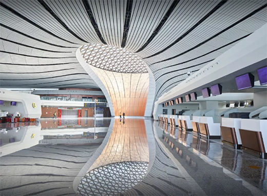 2014年11月,法國(guó)ADP Ingenierie 建筑事務(wù)所和扎哈·哈迪德(Zaha Hadid)工作室成功拿下大興機(jī)場(chǎng)T1航站樓設(shè)計(jì)項(xiàng)目。機(jī)場(chǎng)航站樓形如展翅的鳳凰,是五指廊的造型,按照節(jié)能環(huán)保理念,建設(shè)成為中國(guó)國(guó)內(nèi)新的標(biāo)志性建筑。