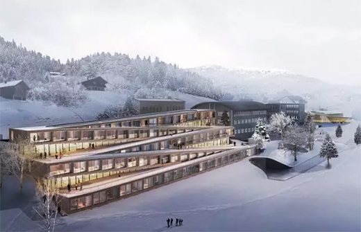 這座位于瑞士的滑雪酒店由Bjarke Ingels Group設(shè)計(jì),占地6400平方米,五個(gè)曲折堆疊的平板逐漸展開(kāi),輕輕傾斜以融合成從屋頂?shù)降孛娴牡缆?,使滑雪者朝著山谷的小道下降,俯瞰似蜿蜒的梯田?/p>
