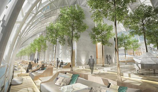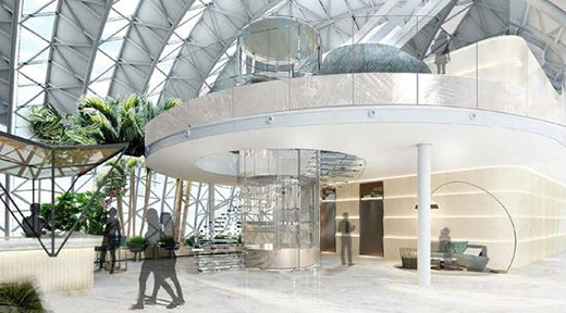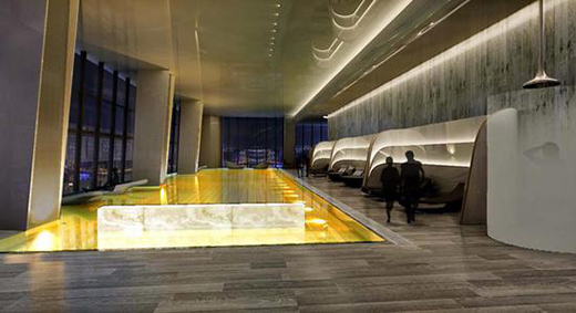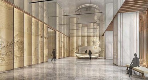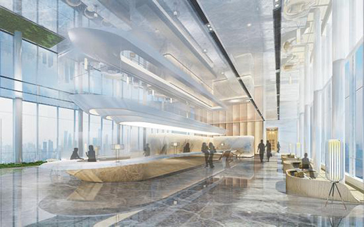 接待區(qū),江中游行時(shí)可觀賞到的倒影被應(yīng)用于高層空間的設(shè)計(jì)