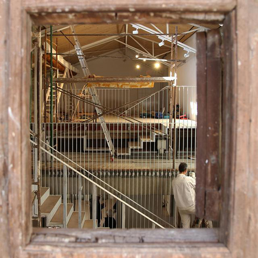 代表大廳的地面層空間,保持了古建筑原有的唯一木梁,并變身融合巴洛克與民居風(fēng)格的特殊空間,增加畫廊和新翼樓,也改變其本為長(zhǎng)方形的幾何平面外觀。