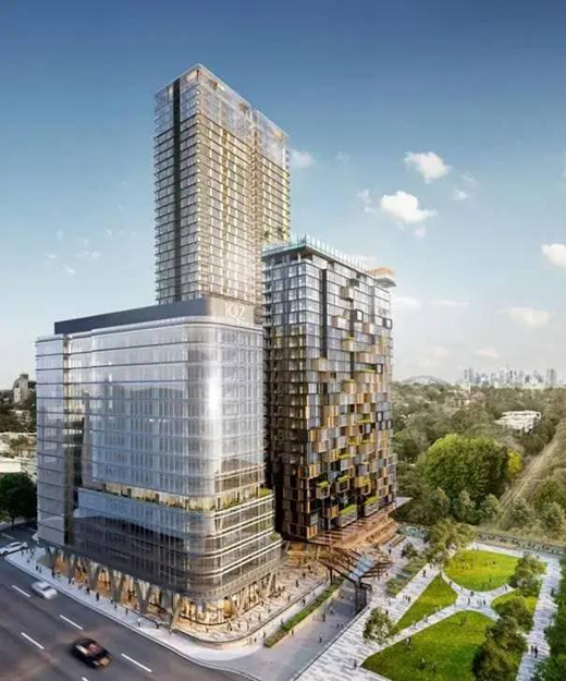 作為創(chuàng)新的新城市項目,八十八大廈為悉尼的圣萊昂納德區(qū)(St Leonards)創(chuàng)造了一個充滿活力的多功能社區(qū)和重新煥發(fā)活力的新中心。項目設(shè)有公共開放空間、一座3萬平方米的商業(yè)樓、兩棟分別為47層和26層的住宅樓、一個三層的零售中心、一個新的公共圖書館,以及屋頂游泳池、健身房和室外平臺等設(shè)施。