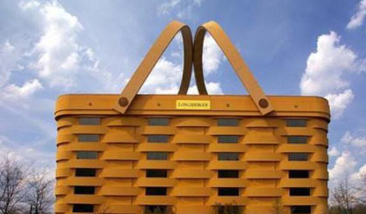 今天,我將向您介紹其中一個(gè)奇怪的建筑,它被稱為籃子建筑,它位于美國俄亥俄州紐瓦克市,整個(gè)建筑被做成籃子的形狀,遠(yuǎn)遠(yuǎn)看去,我覺得就像是在一個(gè)童話里的巨人國度,但這棟樓是美國某著名籃筐制造商的總部大樓。