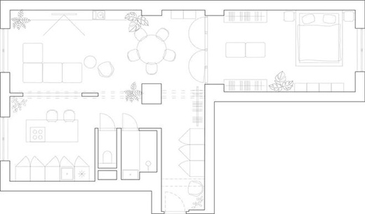 改造的核心是“減輕不必要的障礙并提升配置”,除了從西到東貫穿的承重墻,所有的隔斷都被剝除,每個(gè)房間不通過墻壁來定義,而是由空間本身的功能和材料定義。