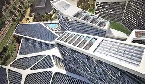 迪拜是一個(gè)充滿創(chuàng)造性的國(guó)家,一座又一座令人難以置信的建筑在這片土地上拔地而起。除了沙子和創(chuàng)造性外,迪拜還擁有什么豐富的資源嗎?答案自然是充足的日照。格拉夫特建筑設(shè)計(jì)事務(wù)所(GraftLab)設(shè)計(jì)的垂直村落便充分利用了這種優(yōu)勢(shì)。建筑表面與太陽能收集器呈特定角度。太陽能收集器位于這個(gè)多功能建筑群的南端,裝有自動(dòng)旋轉(zhuǎn)樞軸,可讓日照時(shí)間實(shí)現(xiàn)最大化。