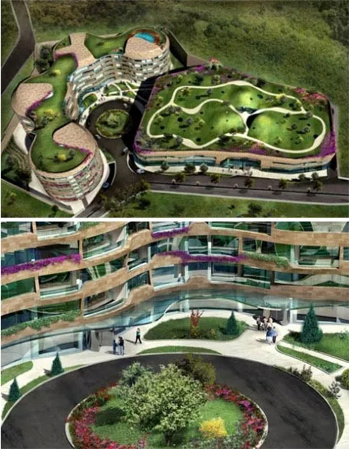 這個(gè)名為“One & Ortakoy”的多功能建筑群位于土耳其的伊斯坦布爾。它擁有彎曲的有機(jī)形態(tài)以及被綠草和鮮花覆蓋的起伏屋頂,與所在的美麗山區(qū)融為一體。這個(gè)建筑群位于奧爾塔科伊附近地區(qū),現(xiàn)正在建造之中。它由兩座建筑構(gòu)成,正面使用天然石頭打造。其中一座是住宅建筑,另一座則是商用建筑。