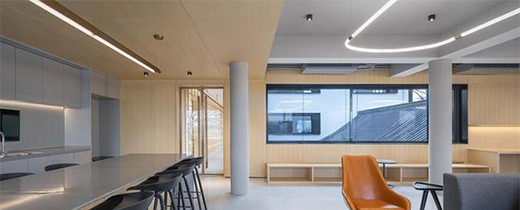 「屏幕上的工作即使千篇一律,但抬起頭就能看到自由的陽(yáng)光、空氣和景色」,是設(shè)計(jì)師想帶給使用者最直觀的感受。辦公室環(huán)境充盈著隨處可見的自然,讓使用者勞逸結(jié)合,形成一種輕松愉快的“度假式”工作氛圍。設(shè)計(jì)者為每一個(gè)室內(nèi)空間量身定做了窗戶,既滿足了現(xiàn)代辦公對(duì)采光的需求,使室外的風(fēng)景成為“室內(nèi)掛畫”,同時(shí),也成為建筑立面上別致的“畫框”。