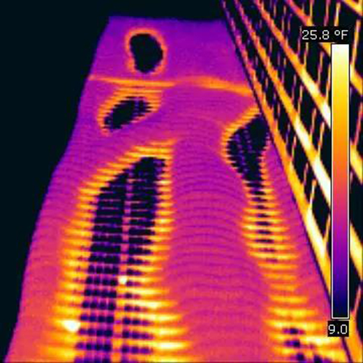 顯示穿過隔熱建筑圍護(hù)結(jié)構(gòu)的樓板熱損耗的熱圖像。圖片來自公共領(lǐng)域,通過 Wikimedia Commons 分享。