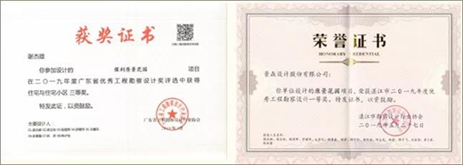 該項目為景森設(shè)計公司所設(shè)計,在2019年省優(yōu)和市優(yōu)評選中,該項目脫穎而出,一舉拿下2019年度廣東省優(yōu)秀工程勘察設(shè)計住宅與住宅小區(qū)三等獎以及2019年度湛江市優(yōu)秀工程勘察設(shè)計一等獎。