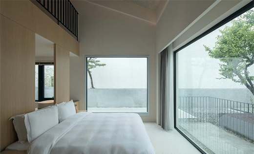 同時(shí)我們希望建筑能從傳統(tǒng)水鄉(xiāng)的肌理中生長出來,與自然更加和諧地融合在一起:這樣在功能和面積的前提下,將整體形態(tài)拆分為幾個(gè)小尺度的建筑,通過排列由此建立新的秩序。我們將10個(gè)單獨(dú)的“盒子”串在一起,形成一個(gè)巨大的連續(xù)空間。賓館有功能齊全的餐廳、茶室、客房、客房、客棧、客棧主人的私人生活空間。這座建筑是由上下兩層組成,垂直向上,體驗(yàn)完全不同。一層設(shè)有客房和主要功能空間,沿河面布置,保證了每個(gè)房間都有良好的景觀,并具有一定的私密性。各功能房間被連接成一個(gè)連續(xù)的共享空間。二室內(nèi)設(shè)天井和可開啟天窗,滿足室內(nèi)公共空間采光,更能使室內(nèi)公共空間更好的采光,更能使室內(nèi)公共空間更能讓室內(nèi)公共空間采光,使室內(nèi)公共空間更加自然地采光。