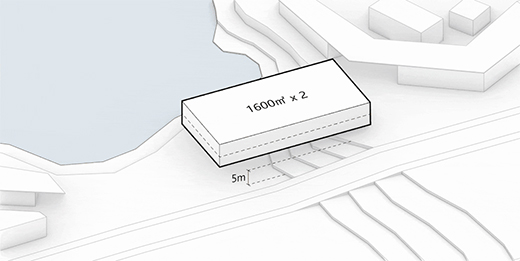 原始場地內(nèi)東西方向有5米高差,東側(cè)地勢較高,連接景區(qū)主入口,西側(cè)地勢較低,連接景區(qū)內(nèi)的主題廣場。北側(cè)擁有重要的景觀面,直面園內(nèi)的觀景湖和遠處連綿起伏的山景。