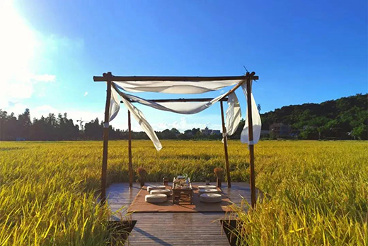 傍晚它還可以轉(zhuǎn)換為星空影院,繁星點點,蟲鳴聲聲,在光影流轉(zhuǎn)中感受夜晚的怦然心動。 劇場周圍密植著多種農(nóng)作物,成為周圍自然景觀的延續(xù)。通過使用者和建筑的互動,增加全方位的體驗感受,建立起自然、建筑和人的有機聯(lián)系。