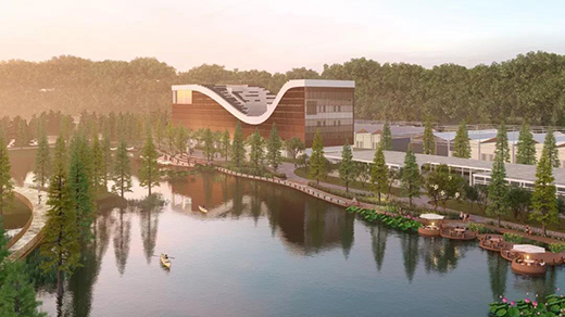 當(dāng)問到為什么用“蓮”這個元素作為設(shè)計的出發(fā)點時,他們談到第一次在十里蓮江進行現(xiàn)場勘查的時候,就被周圍的水池和水面所吸引。 “從飛機上往下看的時候,我們就發(fā)現(xiàn)這個地方有大大小小的水面,這個場地四周被荷花、荷塘包圍著。這個地方又叫十里蓮江,感覺建筑與現(xiàn)場看到的蓮葉蓮花有一種內(nèi)在的聯(lián)系?!?/p>