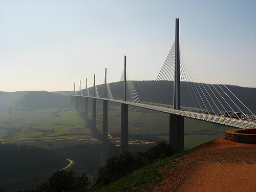 米洛大橋位于法國(guó)南部,橫跨塔恩河谷,米洛大橋采用斜拉橋形式,由法國(guó)建筑工程師米歇爾·沃勒吉克斯 (Michel Virlogeaux) 和英國(guó)建筑大師諾曼·福斯特 (Norman Foster) 設(shè)計(jì)并于2004年建成通車,有效緩解了巴黎、蒙彼利埃和西班牙邊境之間的公路壓力。