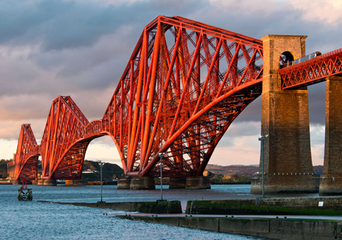 福斯鐵路橋堪稱工業(yè)時(shí)代的一大奇跡。該橋極具創(chuàng)意,主體由三個(gè)巨大的籠狀懸臂組成,其花崗巖橋基位于福斯灣水下46米深處。大橋于1882年動(dòng)工開(kāi)建,于1890年竣工,成為英國(guó)當(dāng)時(shí)第一座大鋼鐵橋。