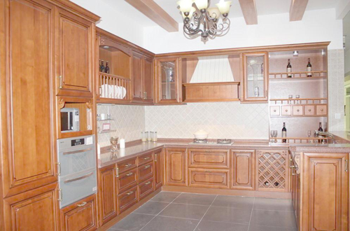 英劇《唐頓家園》走出的廚房。歐式實(shí)木的高柜顯示主人家的高貴,再加上低矮的櫥柜使儲(chǔ)物功能強(qiáng)大。再用雕刻精致的擋板圍住煙機(jī),使設(shè)計(jì)得到了恰當(dāng)?shù)倪^度,整體顯莊嚴(yán)高雅。