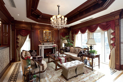 客廳作為待客區(qū)域,一般要求簡潔明快,同時裝修較其它空間要更明快光鮮,通常使用大量的石材和木飾面裝飾;美國人喜歡有歷史感的東西,這不僅反映在軟裝擺件上對仿古藝術(shù)品的喜愛,同時也反映在裝修上對各種仿古墻地磚、石材的偏愛和對各種仿舊工藝的追求上??傮w而言,美式田園風格的客廳是寬敞而富有歷史氣息的。