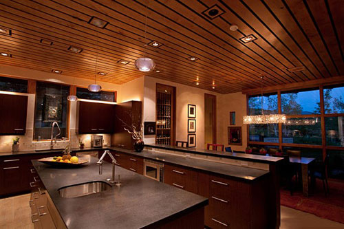 廚房在美國人眼中一般是開敞的,同時需要有一個便餐臺在廚房的一隅,還要具備功能強大又簡單耐用的廚具設(shè)備,如水槽下的殘渣粉碎機,烤箱等。需要有容納雙開門冰箱的寬敞位置和足夠的操作臺面。在裝飾上也有很多講究,如喜好仿古面的墻磚、櫥具門板喜好用實木門扇或是白色模壓門扇仿木紋色。另外,廚房的窗也喜歡配置窗簾等。