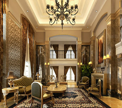 別墅的空間客廳較大,是室內(nèi)重要的休閑場所,也是最突顯整體設(shè)計(jì)風(fēng)格的地方,因而在設(shè)計(jì)上,設(shè)計(jì)師需要對(duì)客廳空間整體和局部的把控。別墅的層高相較于普通的住宅要高,此處在設(shè)計(jì)上一般都考慮增加輔助照明、燈光處理、墻面修飾、欄板形式和選材等手法來豐滿別墅的空間感。