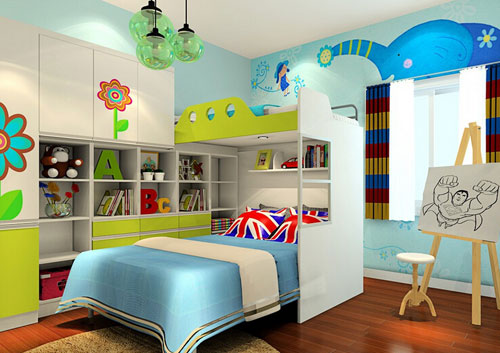 兒童房的配飾和配色要配合孩子活潑好動(dòng)的天性。啟迪性的色彩和趣味化的設(shè)計(jì),最符合兒童的心理,孩子們希望房間的各個(gè)部分都是游樂場(chǎng),連平時(shí)吃飯喝水用的碗筷水杯都要有趣可愛的。而顏色鮮艷的家具,容易激發(fā)孩子的想象力和動(dòng)手能力,有利于促使孩子從小養(yǎng)成凡事規(guī)劃的能力。