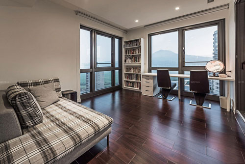 現(xiàn)代時尚的書房視覺自然、干凈易打理、超強耐磨的強化地板才是最合適的選擇。