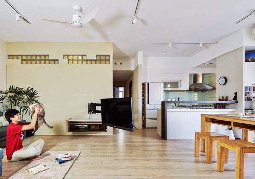 設計線條明朗而流暢,木地板質(zhì)感溫潤,基本都利用直線設計成形態(tài)或形式,又十分注重細節(jié)的處理 通常線條簡單,除了櫥柜為簡單的直線直角外,沙發(fā)、桌子亦為直線或簡潔流暢的曲線條,造型簡單純粹!