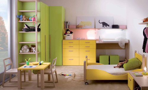 兒童房的配飾和配色要配合孩子活潑好動的天性。啟迪性的色彩和趣味化的設計,最符合兒童的心理,孩子們希望房間的各個部分都是游樂場,連平時吃飯喝水用的碗筷水杯都要有趣可愛的。而顏色鮮艷的家具,容易激發(fā)孩子的想象力和動手能力,有利于促使孩子從小養(yǎng)成凡事規(guī)劃的能力。