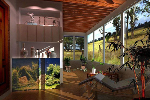 如果因家庭住房較為緊張而需要把陽臺進(jìn)行全封閉而安排成孩子臥室或書房的話,也要下一番功夫巧妙構(gòu)思,使之既實用又美觀。即使是把陽臺作為家庭的儲藏空間,也要根據(jù)實際情況和陽臺條件去設(shè)計裝修及陳設(shè)方式,切忌“室內(nèi)室外兩重天”,因與室內(nèi)裝飾不般配而顯得不倫不類。目前建造的住宅,陽臺上一般是沒有照明設(shè)施的,一到夜晚,陽臺便掩入黑暗之中,故應(yīng)在陽臺上裝置一盞陽臺燈。如果陽臺門與陽臺窗之間有間墻,可以裝置一盞壁燈,安裝高度宜距地面1.8一2m,燈具材料最好選用不怕日曬雨淋的玻璃燈具;如果門與窗之間無間墻,可以在上一層陽臺板底裝一支浮白罩的吸頂燈。由于陽臺燈只供休息時照明,故不必太亮,燈的開關(guān)則應(yīng)裝置在室內(nèi)。