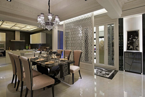 客餐廳,客餐廳同處一個(gè)大空間,通過(guò)頂面的吊頂設(shè)計(jì)間接區(qū)分整個(gè)空間。