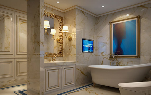 主衛(wèi)生間的面積一般較大,應該將區(qū)域劃分成干濕區(qū),除了設置浴缸、坐便器、洗臉盆外,條件允許的話,還可考慮放入梳妝臺,或劃分出一個梳妝的空間;次衛(wèi)生間通常設置在客廳邊上,它的性質(zhì)是公共的,是為客人提供服務的,重視私密性,裝飾上不必豪華。
