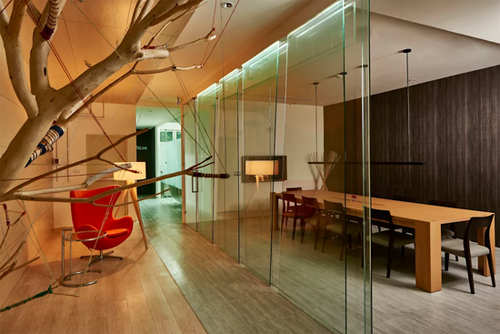 讓超現(xiàn)實的地景變身為空間風景,展現(xiàn)出截然不同的辦公想像。當嚴謹?shù)氐乱庵揪?,遇上了北歐的清新質(zhì)地,看似沖撞、迥異的風格屬性,卻是設(shè)計師深入品牌理念勾勒而出的多層次品味。