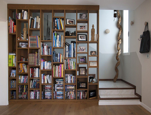 用書架把客廳和書房快速區(qū)分開來,工作娛樂兩不誤。