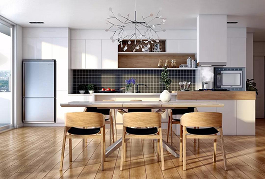 當白色與天然的木色混搭在一起,造型簡潔大方、線條飽滿流暢,整個空間都散發(fā)出簡約時尚的氣息,給人一種自然的舒適感。