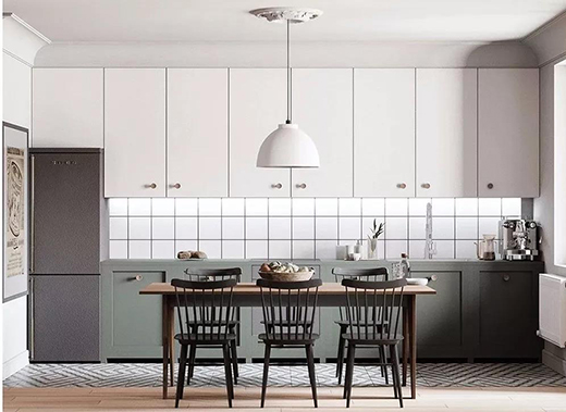 大白墻雖然不加雕飾,但可以和很多材質(zhì)進行搭配,選擇帶有凹凸紋理的材質(zhì),如白磚墻、硅藻泥、護墻板、石材等搭配使用,可以產(chǎn)生美感與功能兼?zhèn)涞囊曈X效果。