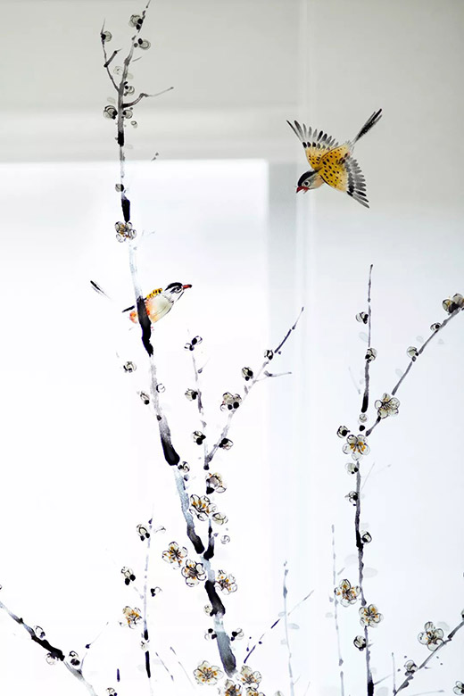 層層疊疊的白色垂簾,山水氤氳的清雋之姿淡淡描摹其上,一張未經(jīng)雕飾的木桌,設(shè)計整體上力求突出中國傳統(tǒng)的美學精神,營造處一個能夠凈化心靈、安養(yǎng)心神的簡凈空間,靜享生命中清淡的歡愉,在杯水茶盞、筆墨棋格間,尋覓生命最本真的悠游狀態(tài)。