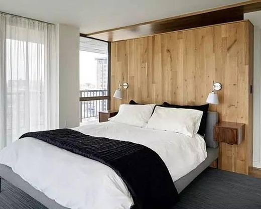 軟包設(shè)計。臥室床頭的軟包設(shè)計,柔軟舒適,給睡眠暖暖的溫馨感,另外軟包形式別有高貴典雅風(fēng)韻,為臥室增添典雅韻致。軟包、收納柜與床頭燈統(tǒng)一在一面墻,單一之地,滿足生活的多種功能。
